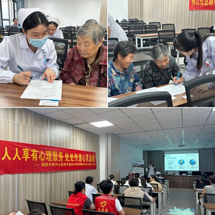 10月10日下午,国药中铁中心医院内三科专业团队走进桐江社区,通过“讲座+答疑+筛查”方式,将心理健康指导与慢病管理服务送到居民家门口,守护社区老人健康。